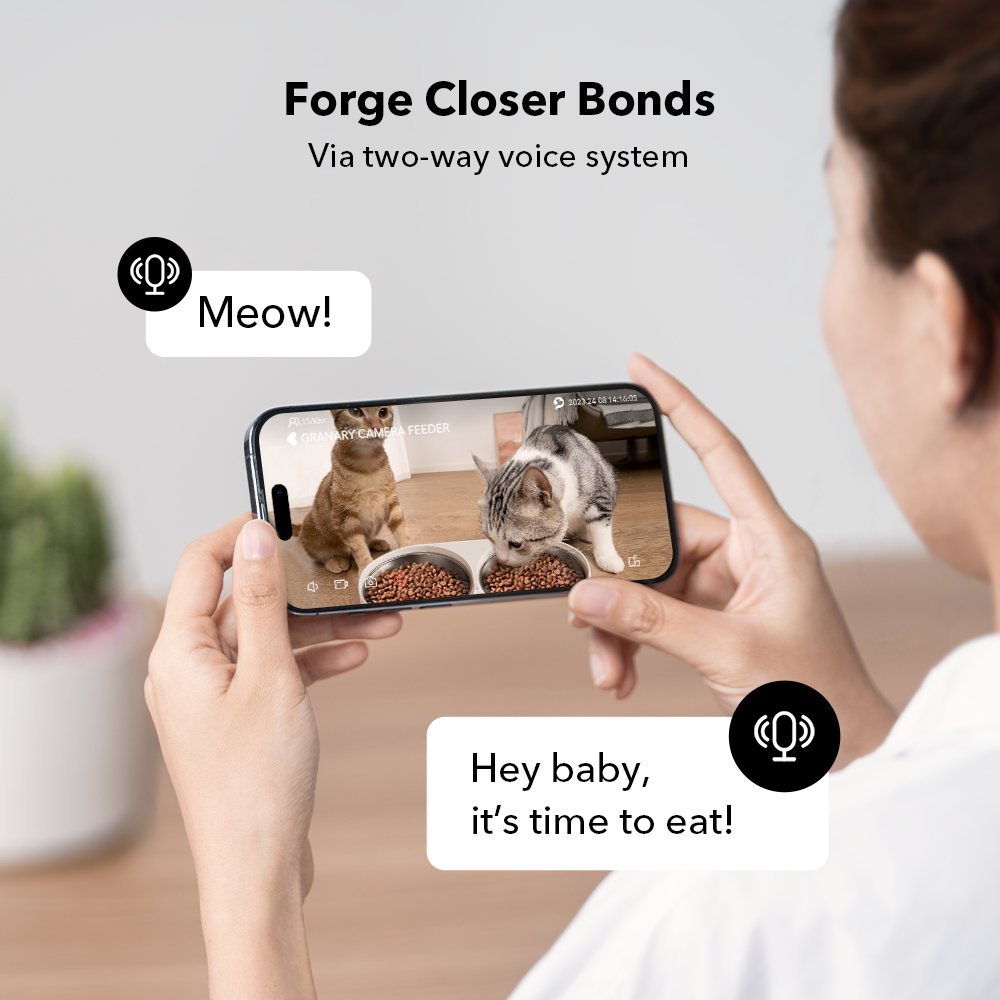 The built-in 1080p HD camera with infrared night vision helps to monitor your pet's diet all day. Stay on top of your pet's mealtime with the smart app notifications of PETLIBRO Granary Camera Feeder. Create personalized feeding schedules on the app to suit your pet's nutritional needs, promoting a healthier diet.