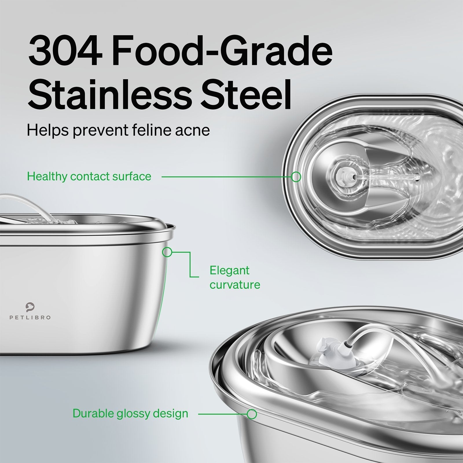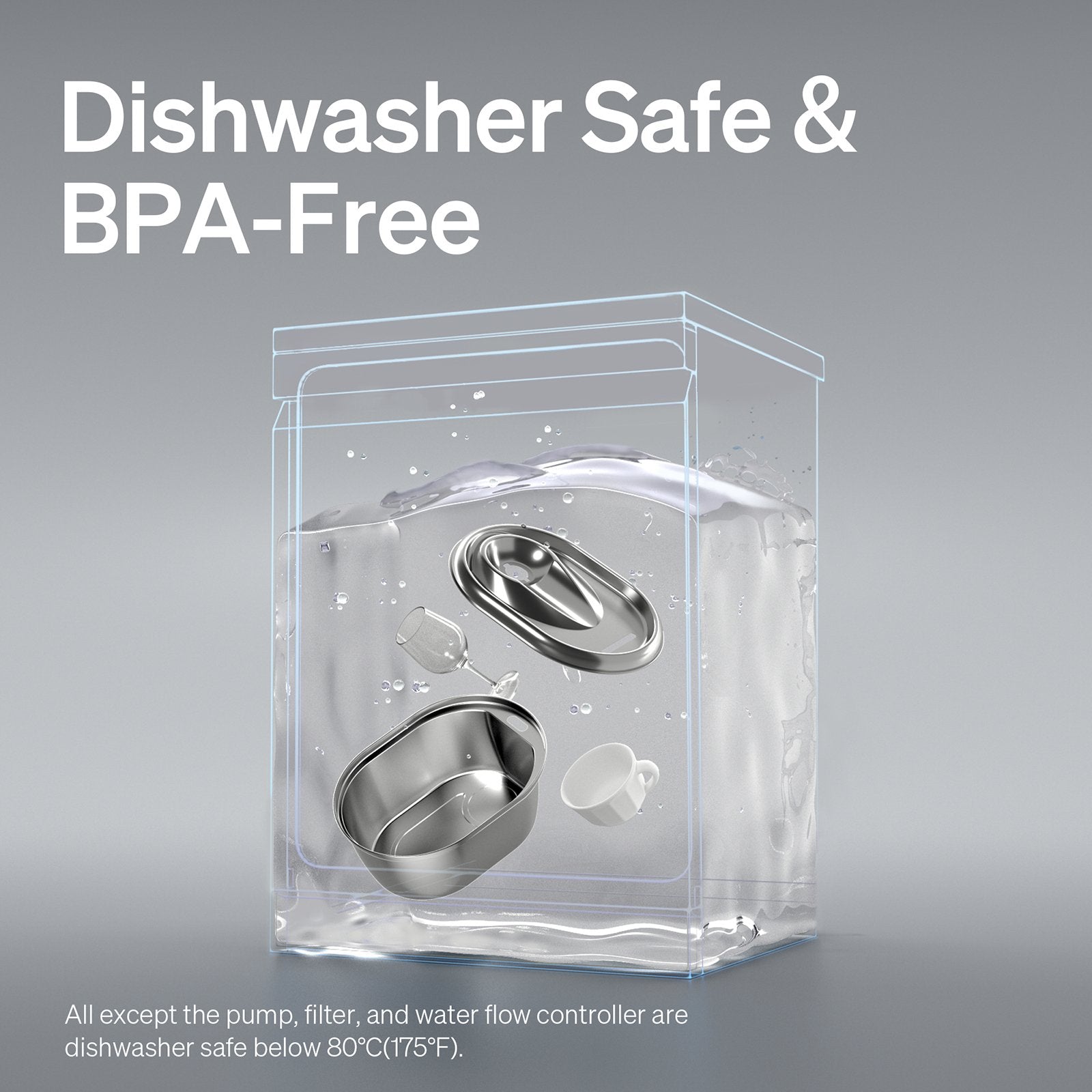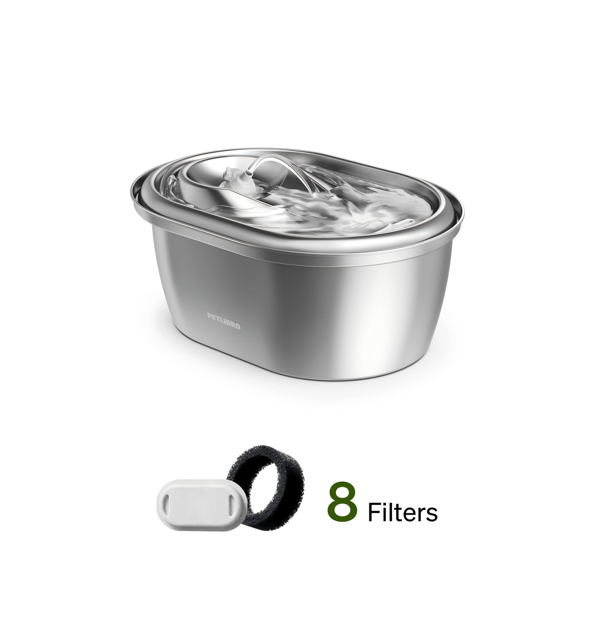 Made of 304 stainless steel, PETLIBRO pet water fountain is BPA-free, rust and corrosion resistant. It's easy to clean, durable and hygienic. All parts can be washed in dishwasher except the pump,the pump holder,filters,water flow controller and water outlet.
